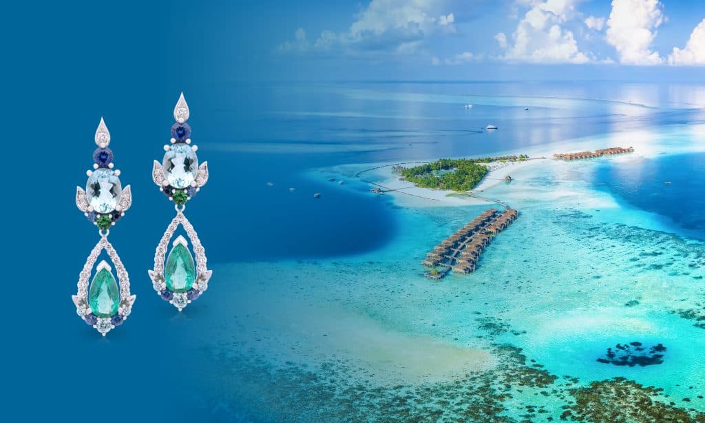Natural Aquamarines mirror the gentle clarity of shallow lagoons, deep Sapphires capture the richness of the ocean depths, and diamonds sparkle like sunlight on rolling waves.