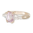 Cushion Cut 2.51ct Peach Sapphire and Bullet shoulder diamonds Engagement Ring.