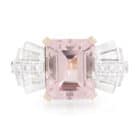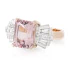 5.05ct Emerald cut Morganite and Art Deco Diamond Bow style Ring