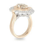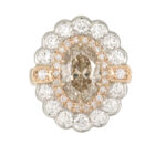 3.01ct Oval C3 Diamond centre surrounded by double halo of round brilliant cut diamonds.