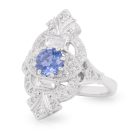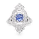 1.08ct Round Brilliant Cut Blue Ceylon Sapphire and Diamond Art Deco Style Ring