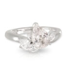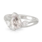 Asymmetrical 1.68ct Pear Sapphire (No Heat) and Pear Diamond Ring with hand engraved leaf feature Ring.