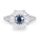 Australian Blue Sapphire and Diamond ‘Spider Web’ Halo Ring