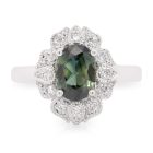 Cushion Cut 1.14ct Australian Parti Sapphire with Art Deco Diamond Halo