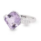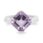 4ct Asscher Cut 4 Claw Amethyst with Diamond Shoulders Ring