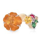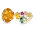 10.52ct Hand Carved Citrine Flower, Yellow Sapphire, Tsavorite Garnet and Red Spinel Dress Ring
