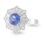 Blue Ceylon Sapphire and Art Deco Diamond Fireworks Engagement Ring