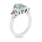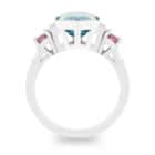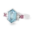 Hexagonal cut Blue Zircon with Pink Spinels and Diamond Ring