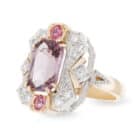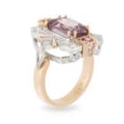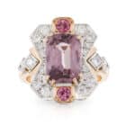 Long Cushion Cut Mauve Spinel Centre, Hot Pink Spinel accents and Diamond Art Deco Engagement Ring