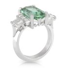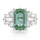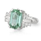 Octagonal Cut 6.73ct Mint Green Tourmaline flanked by F/G Baguette diamonds.