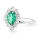 Pear shaped 0.78ct Emerald with Diamond Art Deco Halo